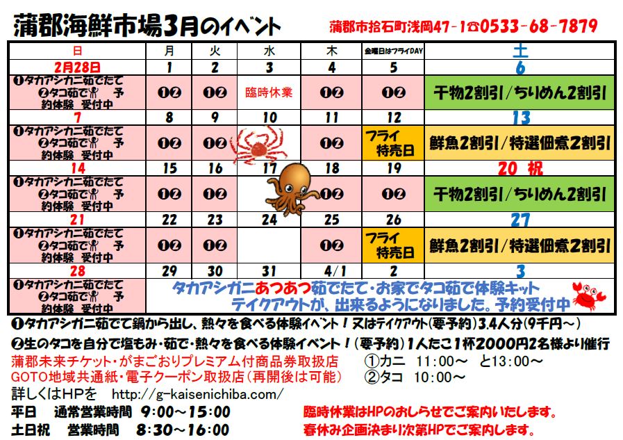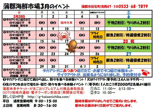 蒲郡海鮮市場では、毎月楽しい&お得なイベントをご用意しております。