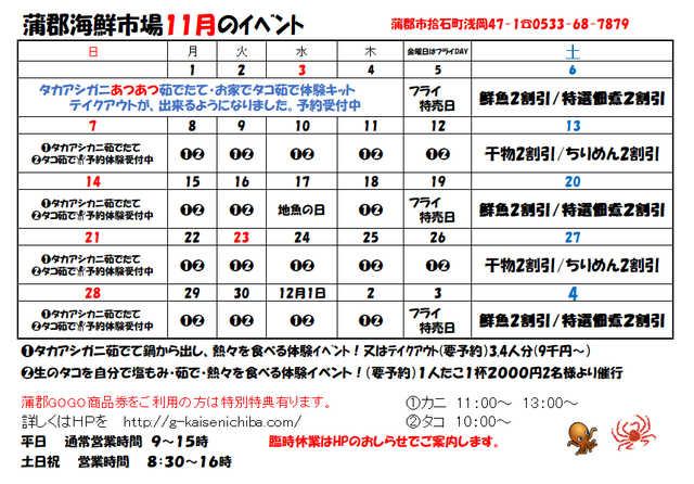 蒲郡海鮮市場では、毎月楽しい&お得なイベントをご用意しております。
