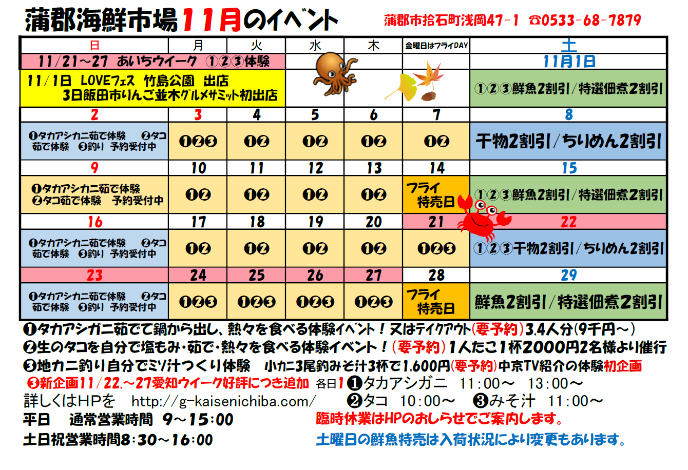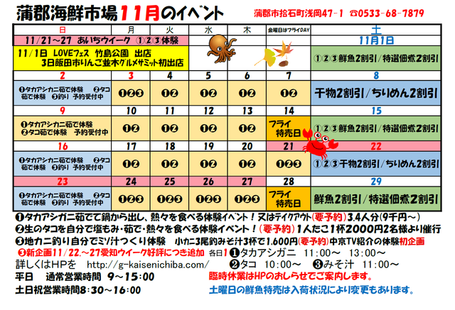 蒲郡海鮮市場では、毎月楽しい&お得なイベントをご用意しております。