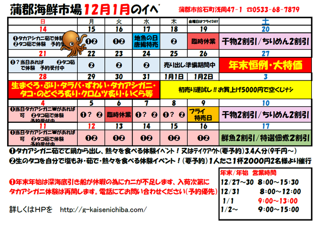 蒲郡海鮮市場では、毎月楽しい&お得なイベントをご用意しております。