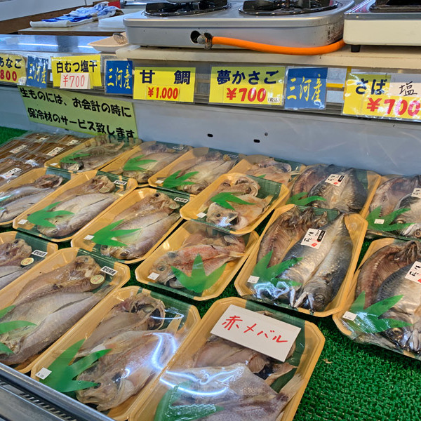 地元で水揚げされた深海魚を中心に、毎週土曜日は干物の特売日です。
