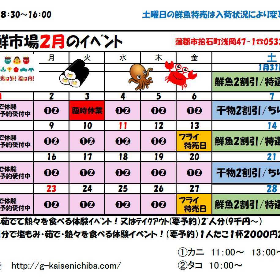 蒲郡海鮮市場の楽しいイベントです。