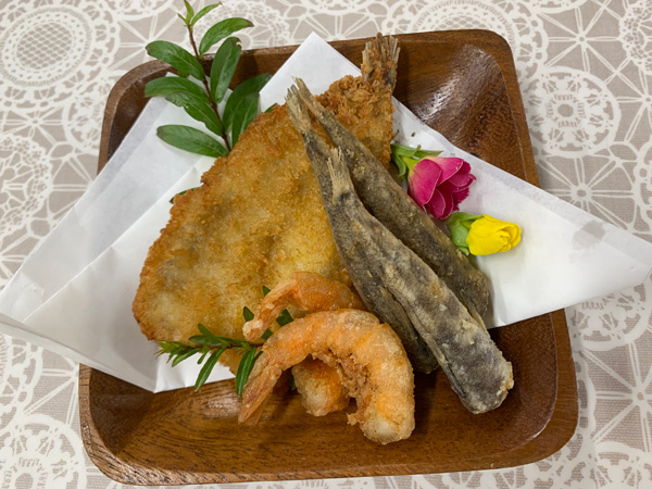 季節の深海魚1品・・・白むつフライ(3~5枚)/髭長エビ(140g)/ギンメダイ(3~5枚)より1品をお届けいたします。
